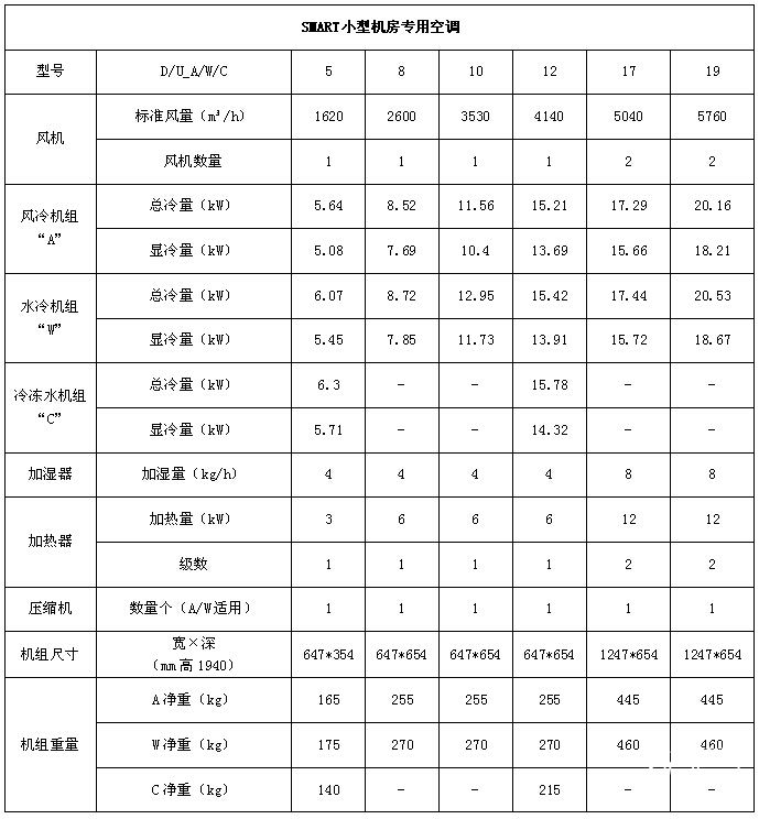 风冷型,制冷量从5KW到15KW两种机柜尺寸;